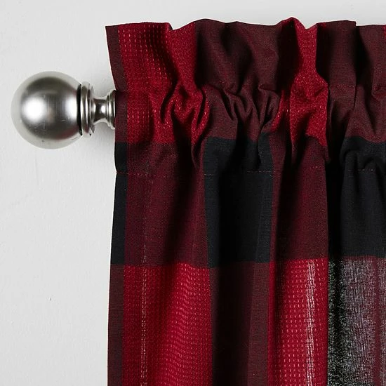 This panel window treatment by Saturday Knight, Ltd. features a classic black, check pattern.