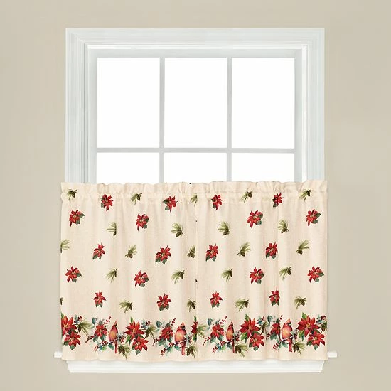 Show off your festive side with this holiday elegance tier curtain set.