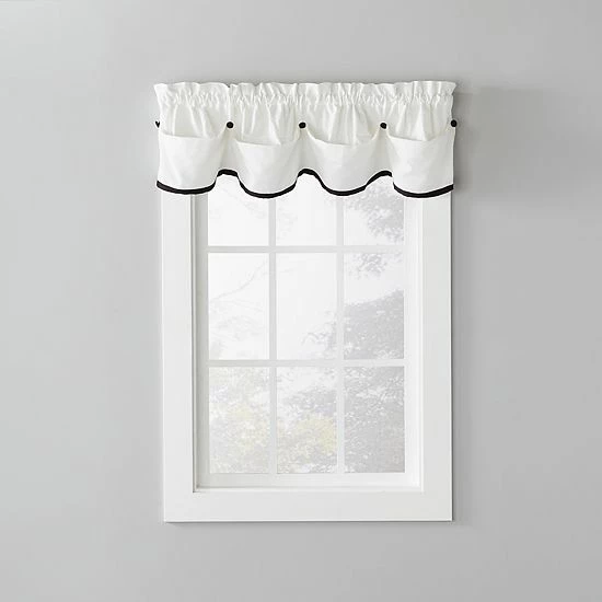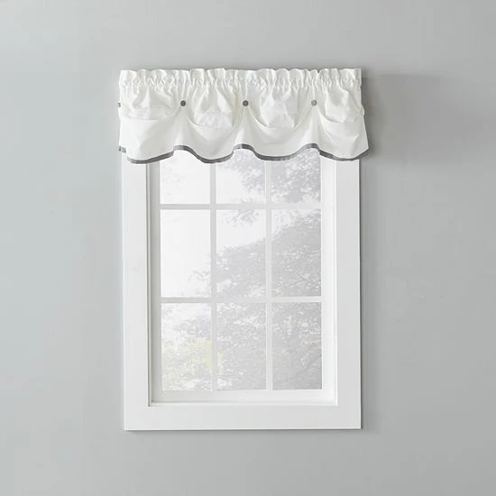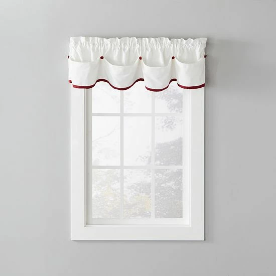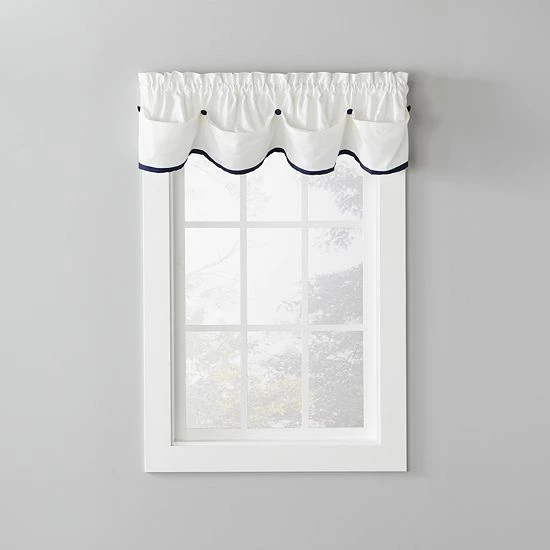 This manor-style valence by Saturday Knight, Ltd. features a bottom ribbon that comes in a variety of colors to coordinate with your home.