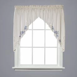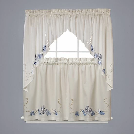 This Seabreeze valance adds coastal charm to your home. The seashell embroidery and neutral colors add a laid-back look to your kitchen or living area. Set a serene scene with this window valance.