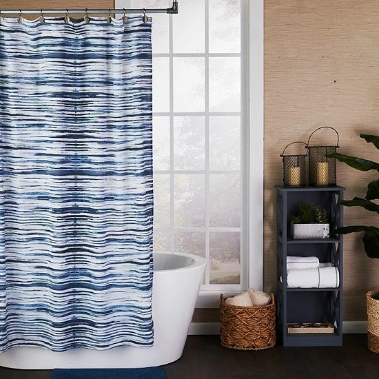 Add some flair to your bathroom essentials with this Vern Yip by SKL Home Shibori Stripe Shower Curtain!